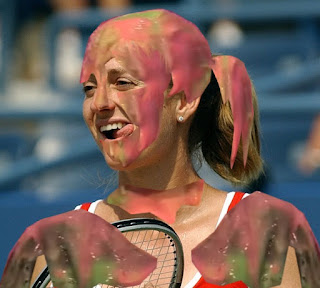 an instant, her hair was covered. The gunge dripped down her face and down her
