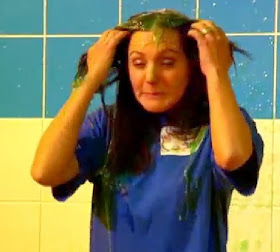 globs of sloppy yellow egg salad plopped onto the netball player’s head. It